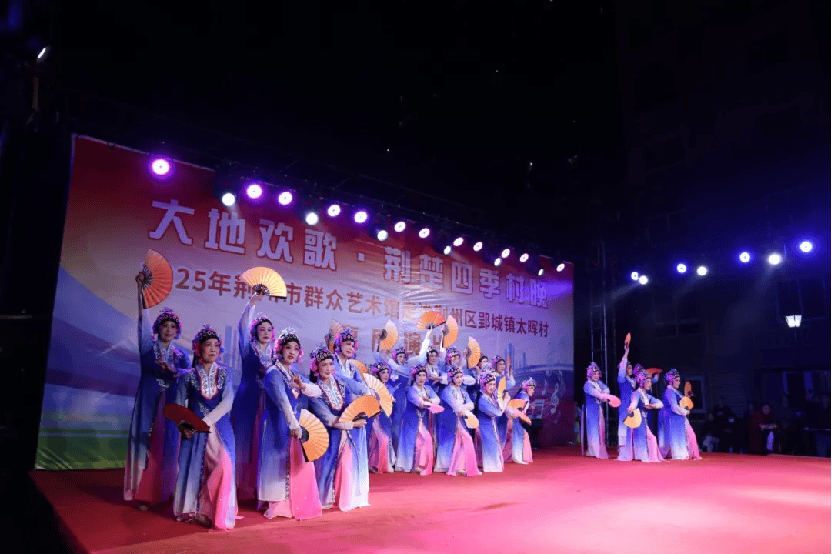 11月14日晚,由荆州市文化和旅游局主办、荆州市群众艺术馆承办的“大地欢歌·荆楚四季村晚”走进荆州区太晖村文化惠民演出,在太晖家园温暖上演。热闹欢快的民俗舞蹈《五虾闹鲇》、孩子们表演的《古城酷娃迷彩梦》等一系列节目精彩呈现,内容雅俗共赏,充分展现了荆楚大地群众文化的繁荣与活力。(荆州市文旅局供稿)