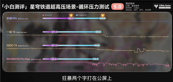 极客湾Geekerwan测试发现,在《崩坏:星穹铁道》981P分辨率、30℃环境、开启5G网络的严苛测试条件下,荣耀WIN的帧率表现依然稳定稳定,其性能释放实力在当前所有搭载第五代骁龙8至尊版的手机中处于顶尖水平。