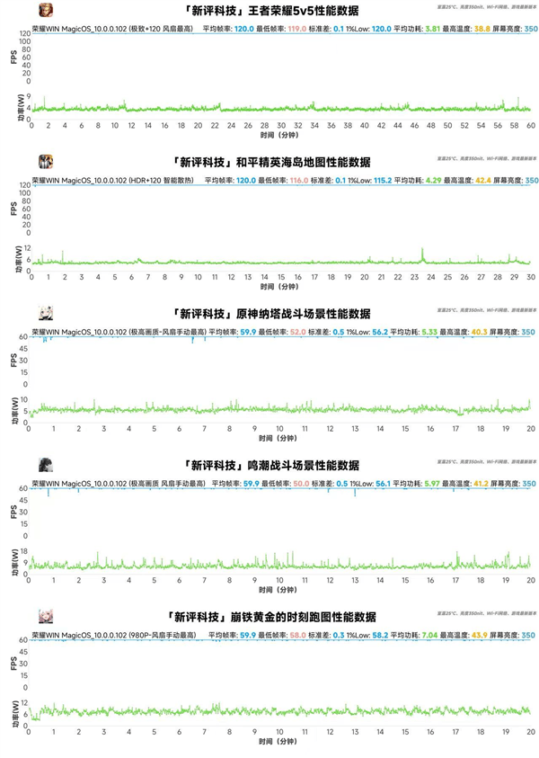 新评科技的五大游戏全场景测试,更将荣耀WIN的性能稳定性推向极致。荣耀WIN全程满帧运行,帧率曲线几乎呈一条直线,没有丝毫波动。尤其在《崩坏:星穹铁道》黄金时刻跑图测试中,980P最高分辨率下,平均帧率仍能达到59.9帧,最低帧率58.0,1%Low帧58.2,这样的成绩在行业内实属罕见。