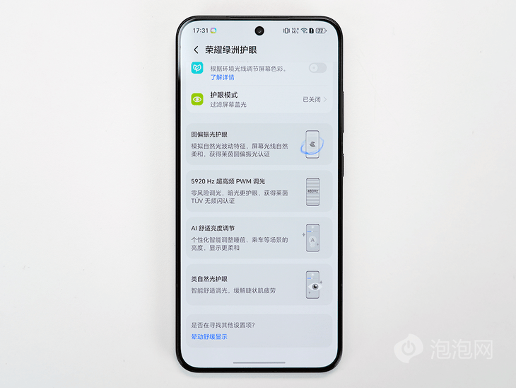 护眼也是荣耀WIN的优势之一,在185Hz刷新率的情况下,支持5920Hz PWM调光,配合圆偏2.0以及AI动态离焦技术,实现全方面的护眼体验。在游戏过程中,手机还支持3D游戏运动舒缓功能,目前支持《无畏契约》《和平精英》《原神》三款游戏,后续还会通过OTA实现更多游戏的支持。