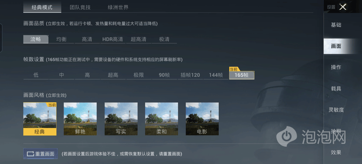 《和平精英》在流畅画质下,支持165帧模式,在游戏中心开启帧率增强后,帧率可以提升到185帧,同时在游戏中可以同时开启帧率增强和画质增强,从而实现帧率与画质的同时升级。