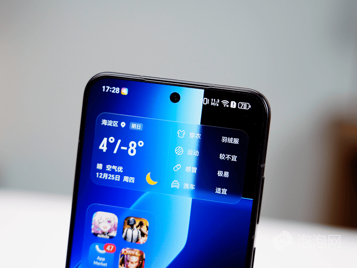 手机采用了精研雾面金属中框,哑光的表面可以减少指纹的痕迹,配合四边包裹式的中框设计,手感也非常的不错。手机还支持IP68、IP69、IP69K多重防护,可以从容应对高压冲洗或者高温水流冲击,日常使用可以更安心。