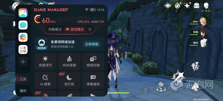 《原神》选择极高画质+60帧,在须弥城跑图中,帧率可以稳定在60帧,非常的稳。