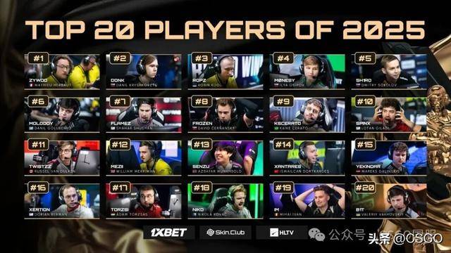通常,这些数据足以让他无可争议地获得年度最佳选手称号,但donk在2025年的惊艳表现让这个评选更具探讨性。要理解为何ZywOo依然领先,重要的是要明白年度TOP 20选手榜单的本质:它是MVP评选逻辑的延伸。