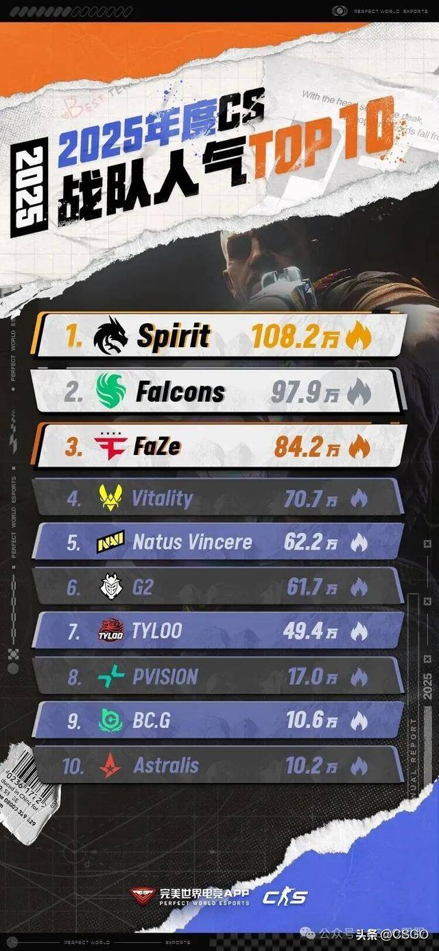 迈入2026年,我们整理了各位玩家去年在完美世界电竞APP里留下的印记,其中最为显眼的当属队伍与选手们的热度数据。因此我们将排名前十的队伍与选手人气值罗列至此,供各位参考。