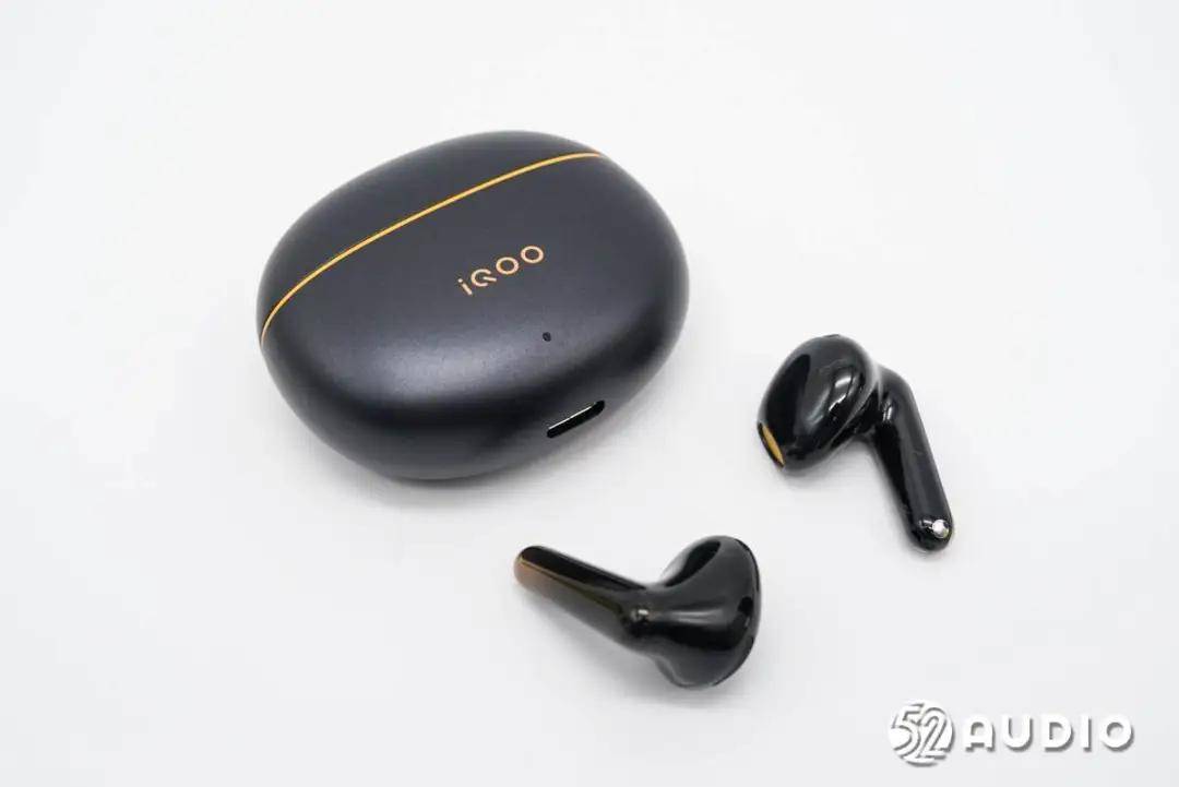 iQOO TWS Air3 Pro真无线降噪耳机在外观方面,延续了家族式的设计风格和经典配色。充电盒采用了鹅卵石状设计,外观圆润,质感出色,体积小巧便携。耳机采用了柄状的半入耳式设计,亮面烤漆质感,黑金渐变配色装饰,有效提升了产品的辨识度;耳机体积同样小巧轻盈,佩戴与耳廓舒适贴合。