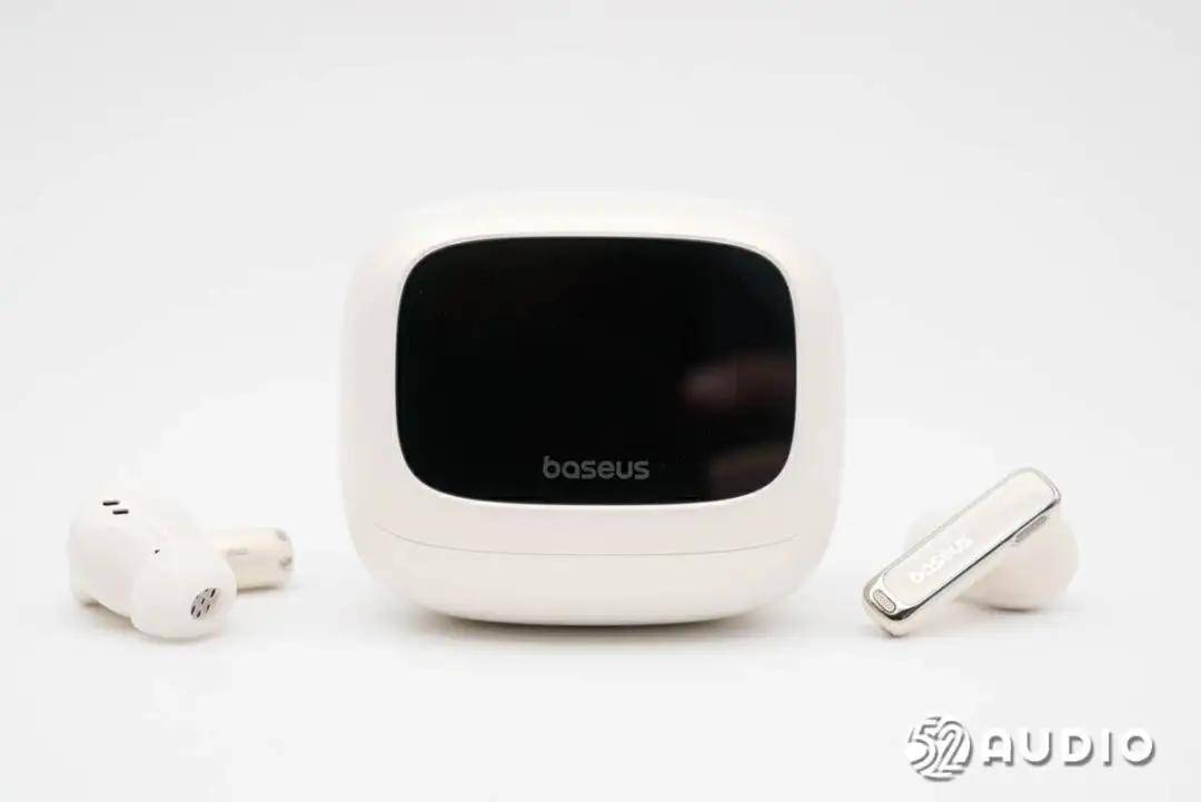 Baseus倍思M2s Ultra带屏真无线降噪耳机在外观方面,延续了该系列的经典设计。充电盒采用了圆润无棱角的设计,涂层类似珍珠般的光泽,质感非常出色;同时全新搭载了全彩LCD屏幕,实现更便捷的功能控制;柄状的入耳式耳机,采用了与充电盒相同的工艺处理,搭配银色边框装饰,佩戴时尚,极具辨识度。