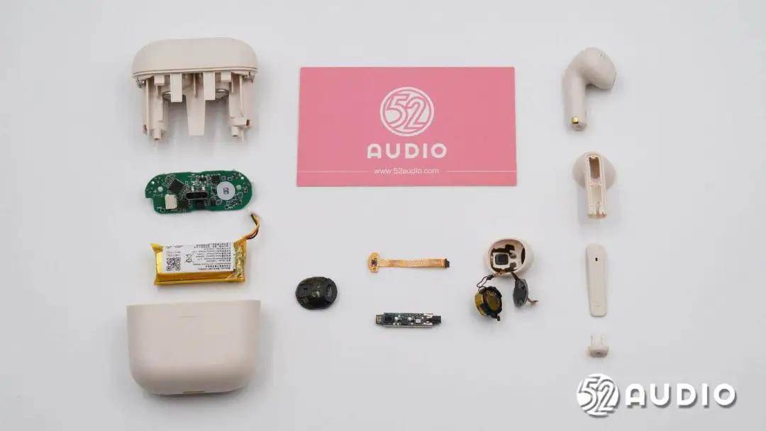 耳机内置40mAh/3.85V钢壳扣式电池供电;搭载12mm PU+PET镀钛膜片巨磁喇叭单元,提供出众的音质;单耳内置三颗MEMS麦克风用于主动降噪、通话降噪、自适应音频等功能拾音;采用了JL杰理JL7096D6蓝牙音频SoC,用于无线连接和音频数据处理。