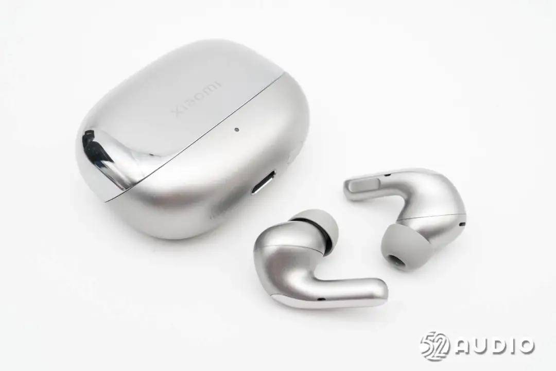 Xiaomi小米Buds 5 Pro真无线降噪耳机在外观方面,延续了家族式的设计风格,独具辨识度。圆角矩形充电盒,体积轻巧,曲线圆润,磨砂和镜面两种质感相结合,观感时尚精致。柄状的入耳式设计,质感与充电盒一致,同时采用了类似“音符”的背板和O型“天使环”装饰;机身整体线条流畅,佩戴舒适稳固。