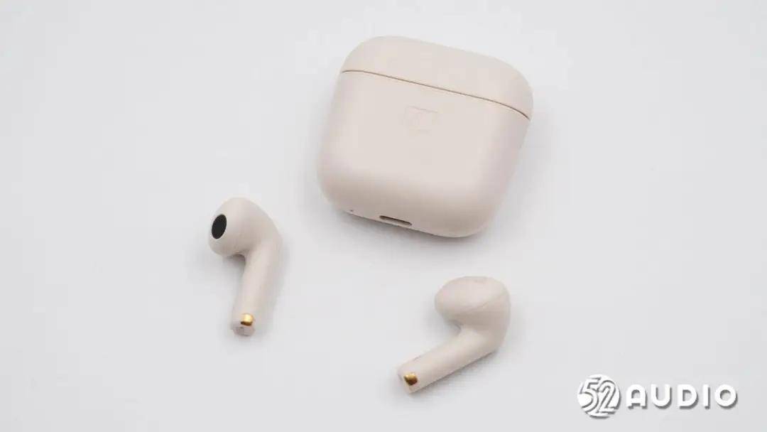 OVEVO欧蕾特Airbuds 5真无线降噪耳机在外观设计上追求简约风格,充电盒采用光滑圆润的烤漆质感,搭配金属腰线提升整体的层次感。充电盒体积也非常小巧,便于外出使用携带。耳机采用柄状的半入耳式设计,重量仅4.1g,搭配饱满贴合的入耳曲线,佩戴舒适稳固。