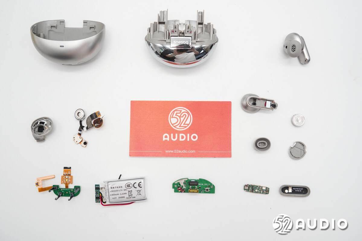 耳机内置3.8V/40mAh钢壳扣式电池,采用了双磁路驱动单元和三颗MEMS麦克风,主控芯片为BES恒玄BES2600IHC3-6X蓝牙音频SoC。